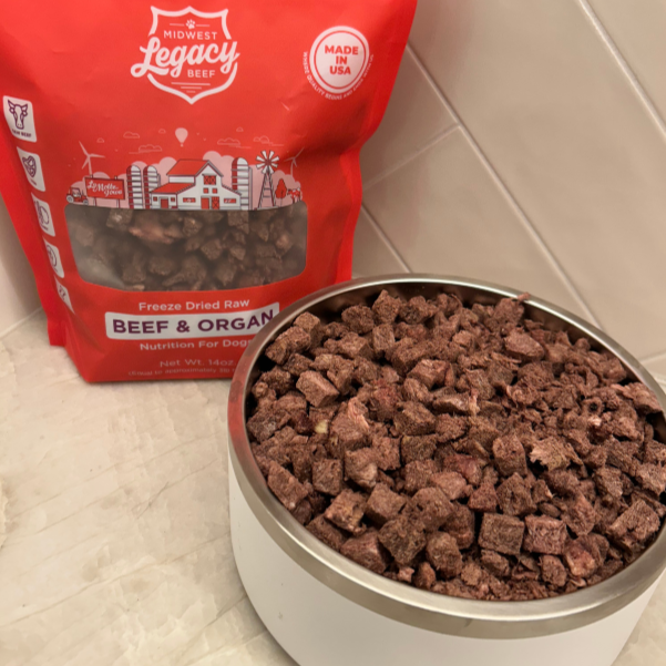 Our take on the coveted 80.10.10 mix now freeze dried! Midwest Legacy Beef's Beef & Organ blend starts with our signature hand deboned Raw Beef. To this we infuse our hand crafted organ blend of liver, spleen and kidney and combine it with marrow filled ground bone. This blend is then freeze dried using our four-step process making the most nutritious 80.10.10 freeze dried mix available.