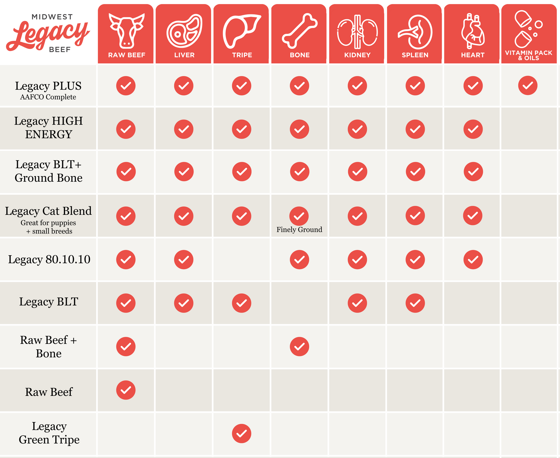 While there are many dog owners that exclusively feed their dogs Midwest Legacy Beef products, we recognize that every dog's nutritional needs are different.